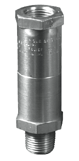 3/8″ MNPT X 3/8″ FNPT Inline Relief Valve, Brass/PTFE construction, cracking pressures between 20 to 2400 psig