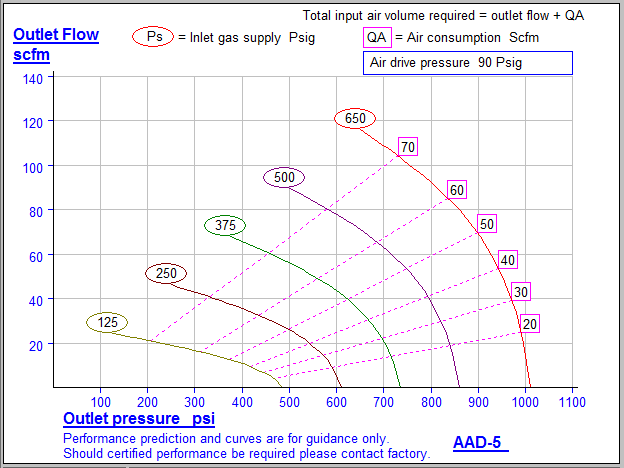 - Static outlet stall pressure formula: 4 Pa + Ps (Pa = air drive pressure, Ps = GAS supply pressure)