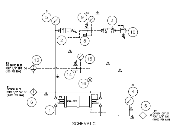 The Haskel model 80529 Oxygen Booster System utilizes a type AGD-62 running on air pressure to boost oxygen pressures to a maximum of 9000 psi.