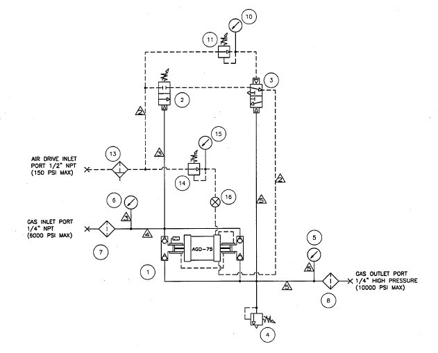 NOTE: this system uses a version of the model AGD-75 Gas Booster modified for OXYGEN service.