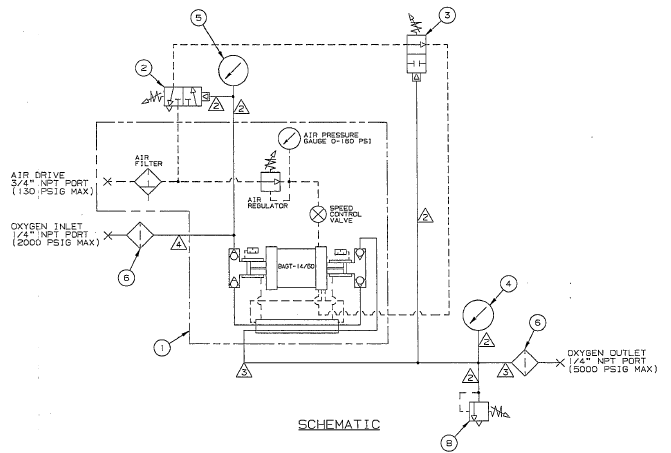 NOTE: this system uses a version of the model 8AGT-14/60 Gas Booster modified for OXYGEN service.