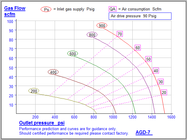 - Boost 18.8 SCFM Gas from 500 psi to 1000 psi while using 30 SCFM Air @ 90 psig supply pressure