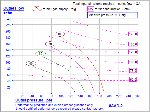 With a nominal pressure ratio of 2:1 (2nd stage ratio N/A), the Haskel model 8AAD-2 Double-Acting, Single Stage Air Amplifier can boost air pressures to a maximum of 300 psi PSIG.
