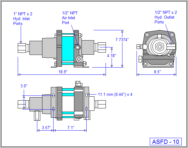 With a nominal pressure ratio of 10:1, the Haskel model ASFD-10 3HP air-driven liquid pump utilizes a single air head to boost liquid pressures to a maximum of 1600 PSIG.