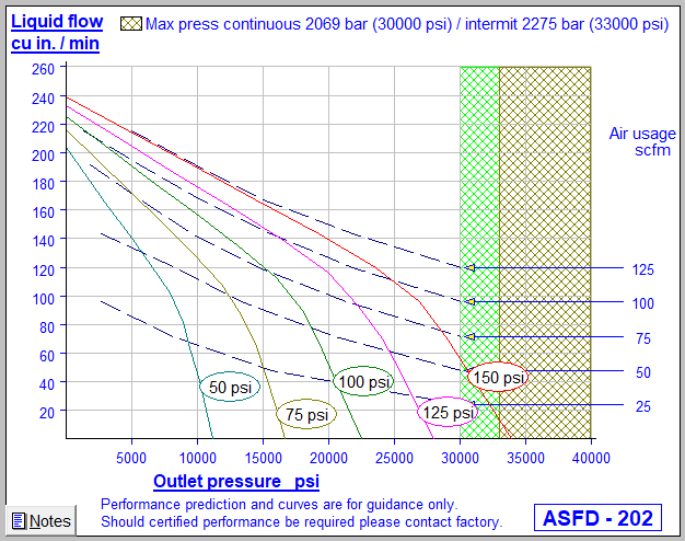 - Max outlet pressure (intermittent): 33000 psi