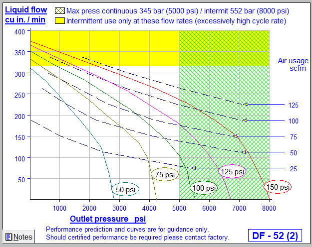 - Max outlet pressure (intermittent): 8000 psi